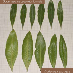 les vrais et faux bois d’arnette (Dodonea viscosa). Le Conservatoire National Botanique de Mascarin (CBNM) travaille actuellement sur une clef d’identification pour permettre aux professionnels de distinguer ces variétés.